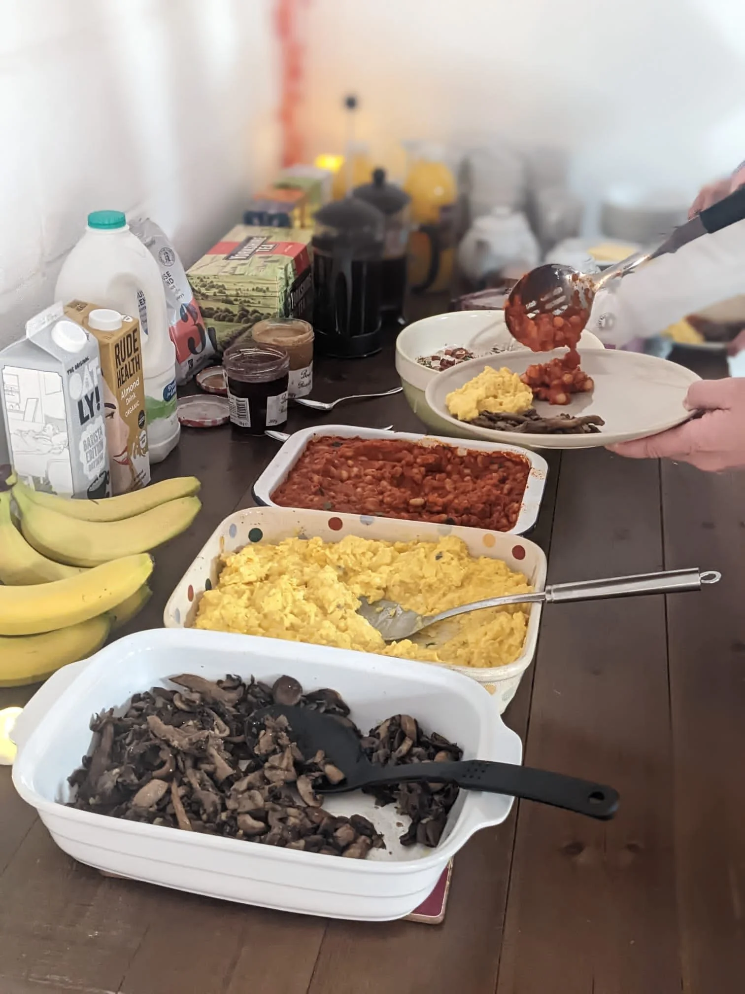 3 x vegetarian/vegan brunches and 3 x vegetarian/vegan evening meal. We always have long, fun communal dinners which are personal highlights of the retreats.